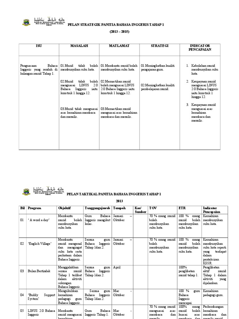 Pelan Strategik Panitia Bahasa Inggeris Tahap 1 Pdf